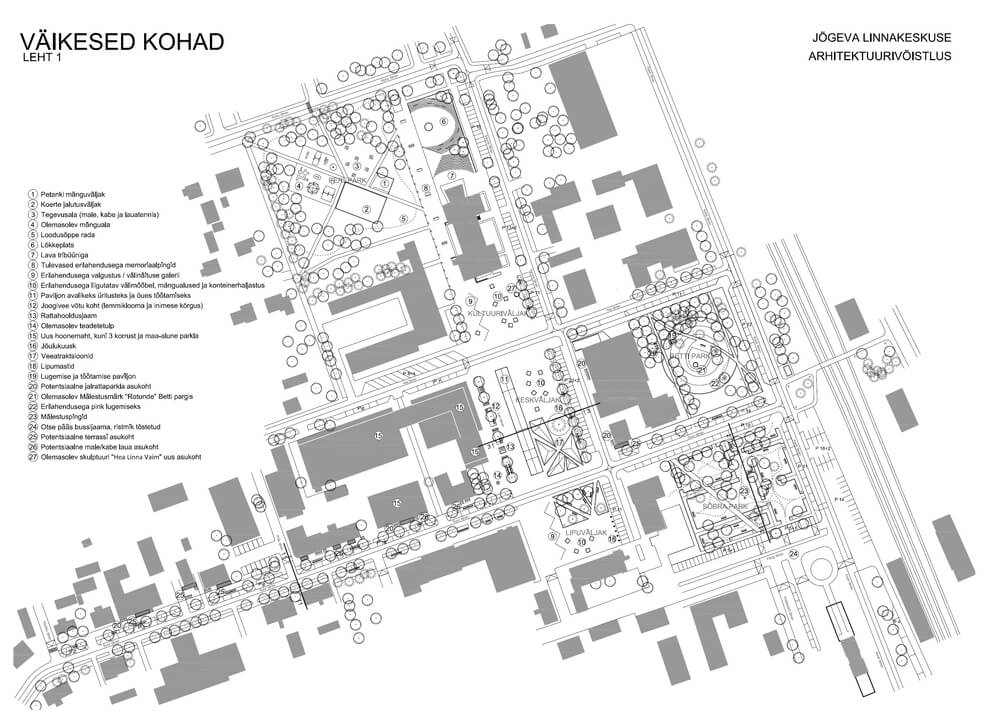 Lähteülesandeks oli Jõgeva linna keskuse elavdamine, keskväljakule ja peatänavale kandva uue idee pakkumine ning ümbruskaudsete parkide sidumine linnakeskuse koosseisu. Võistlusala oli üsna killustunud: eklektiline linnakeskus, funktsioonita transiitpargid, autokeskne peatänav ja hajevil sõlmpunktid, need kõik tuli siduda üheks tervikuks.