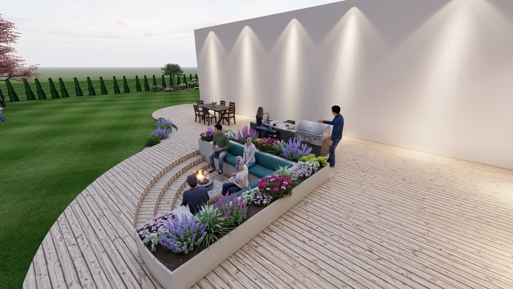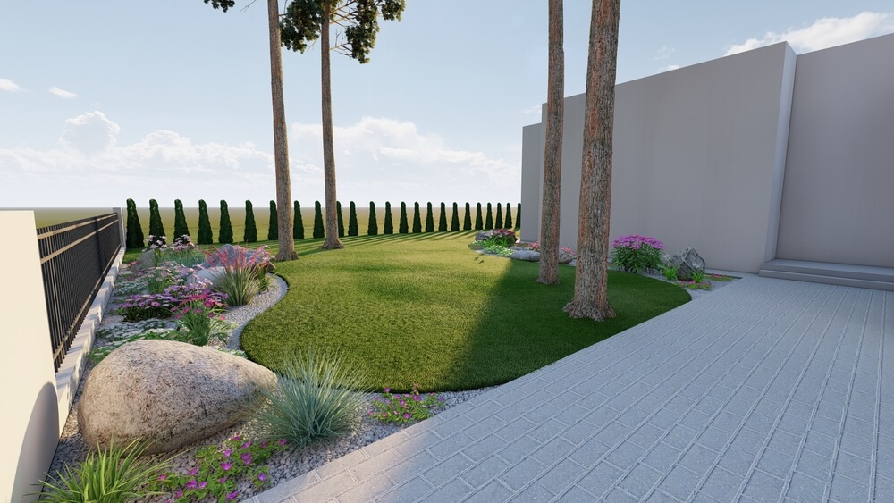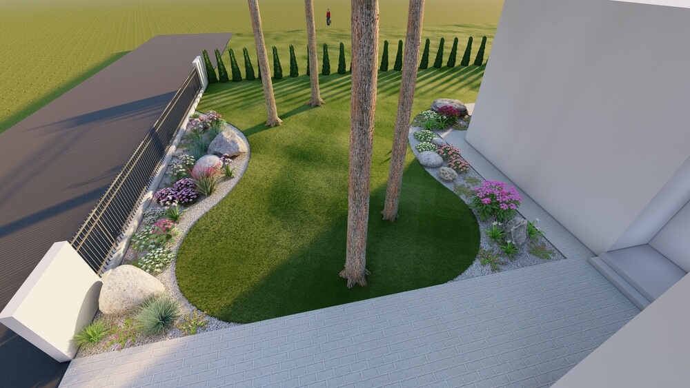 Tulemusena valmis terrassi lahendus, mille serv kulges voolujoonelisena ning mahutas endas süvistatud istumisala koos väliköögi lahendusega. Terrassiala sai kombineeritud istutusaladega istutuskastides, kus sai kasvatada erinevaid püsikuid ja maitsetaimi. Laste mänguala kombineeriti kevadel õitsevate puittaimedega ning mängimiseks valiti kiiged koos liumäega. Hoone esine ala muudeti põnevaks istutusaladega, kus kombineeriti püsikuid koos suuremate kividega.